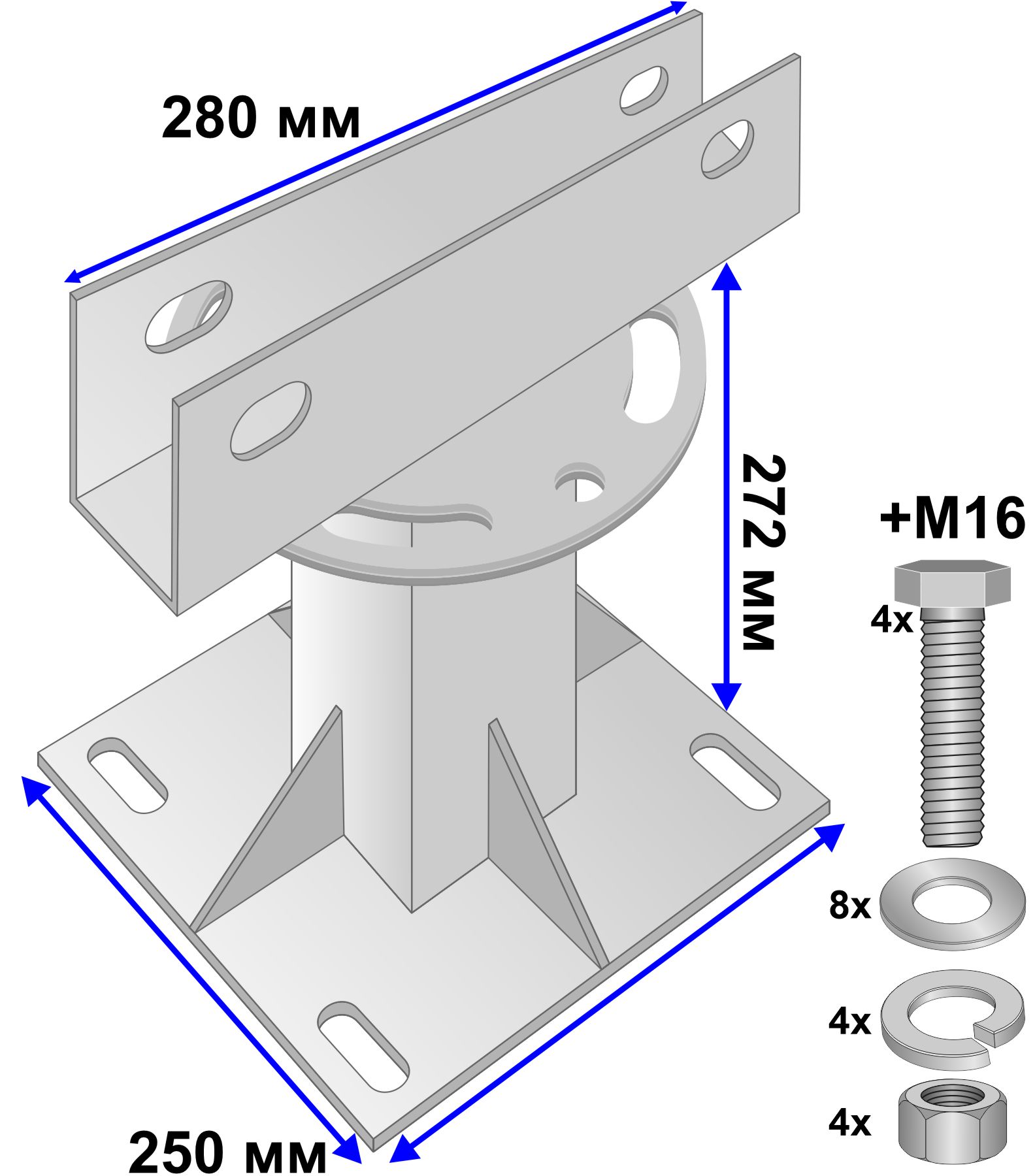 | Способ монтажа | На 4 анкера D16 мм | |